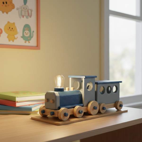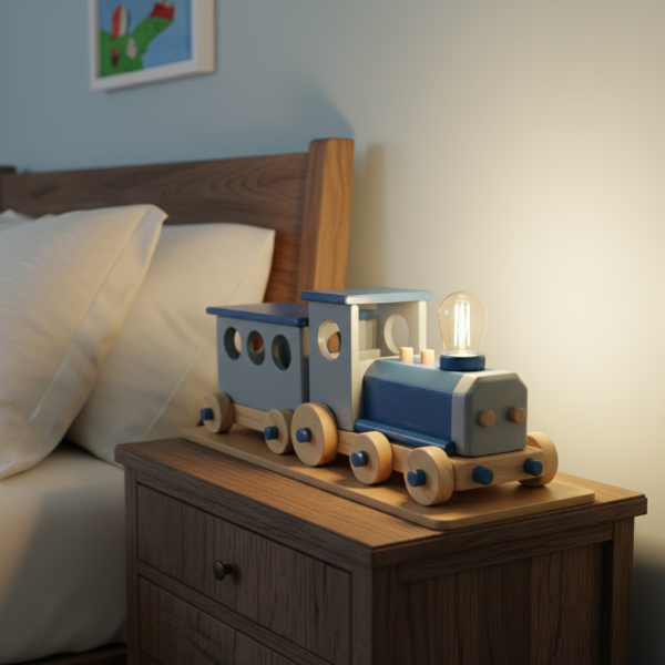 Lámpara artesanal de madera y detalles metálicos los diseñamos junto a vos.