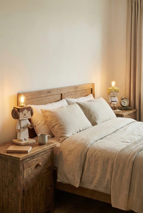 Diseño Exclusivo y Artesanal: Cada velador es único, pintado a mano con detalles que enamoran a cualquier fan de Star Wars. La calidez y textura de la madera realza su acabado 100% artesanal.