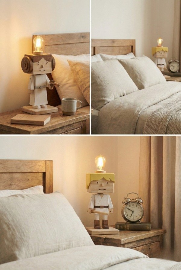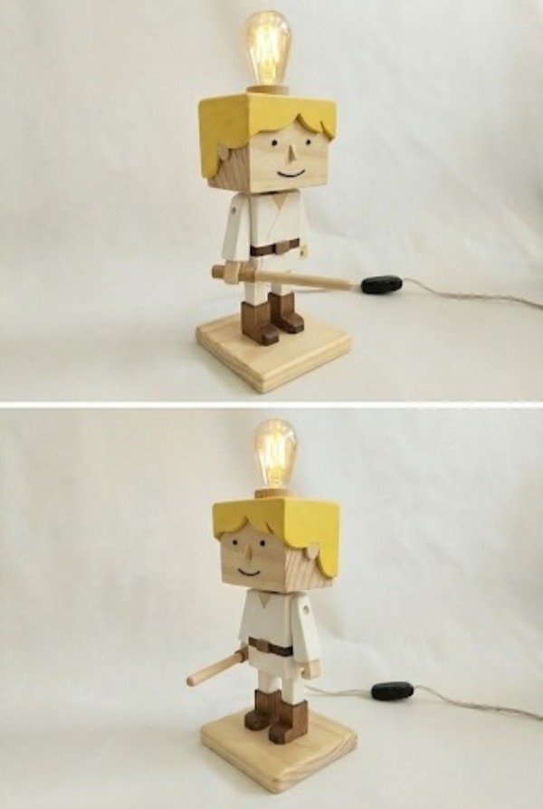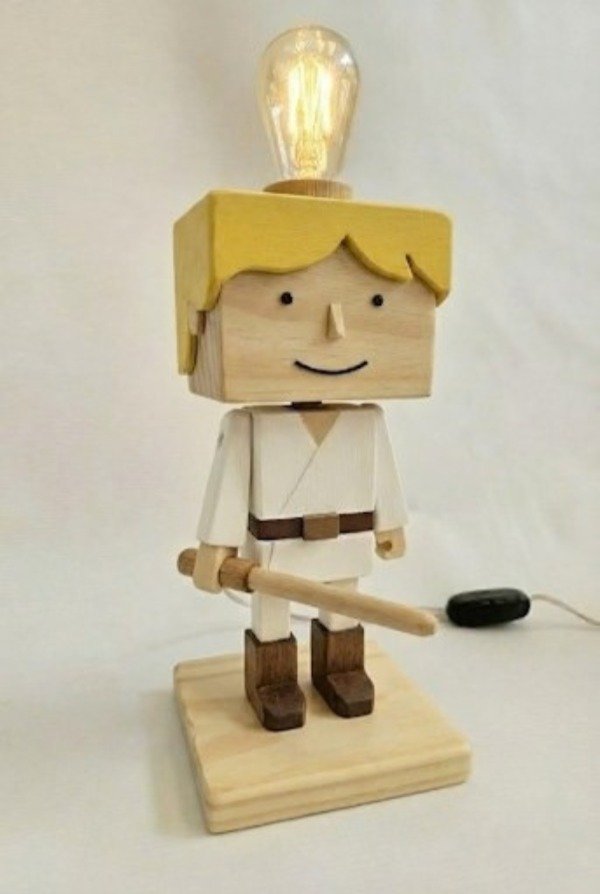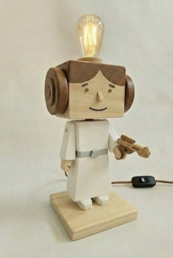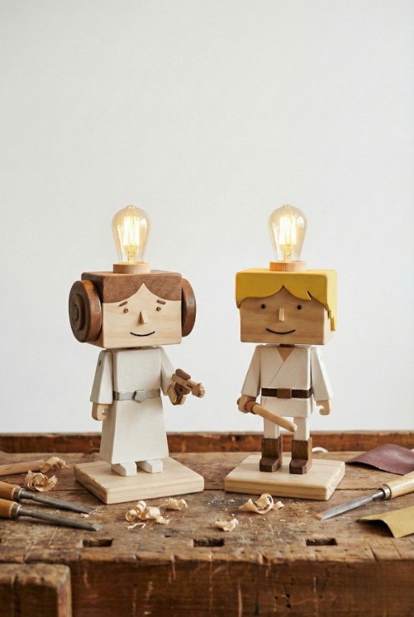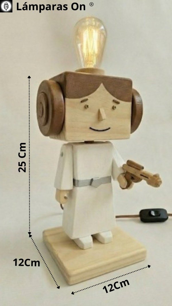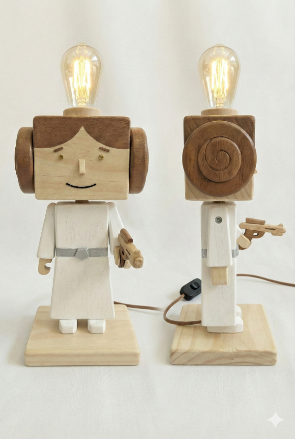 Cada pieza es una verdadera obra de arte, meticulosamente construida y pintada a mano en madera, capturando la esencia de los icónicos hermanos de la galaxia: la valiente Princesa Leia y el joven Luke Skywalker. No solo iluminarás tu espacio, sino que añadirás un toque único de aventura y estilo a cualquier habitación, oficina o rincón de colección.