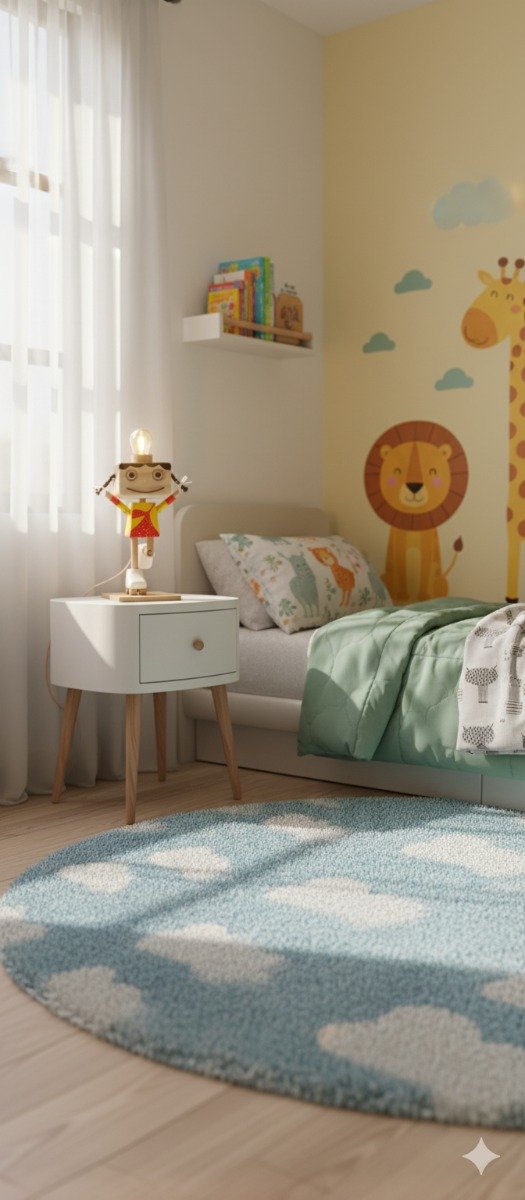 Estilo lúdico, divertido y tierno, ideal para cuartos infantiles.