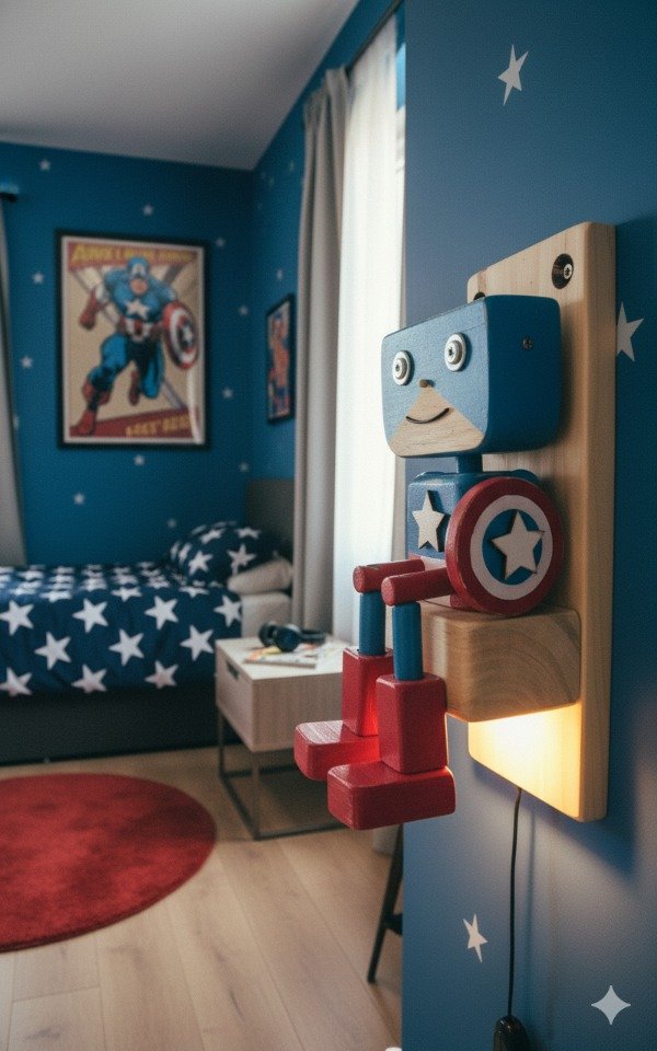 Un artefacto de iluminación funcional y de diseño artesanal que combina la valentía del Capitán América con el valor de lo hecho a mano. ¡No te quedes sin esta pieza de decoración de superhéroes única! 🚀