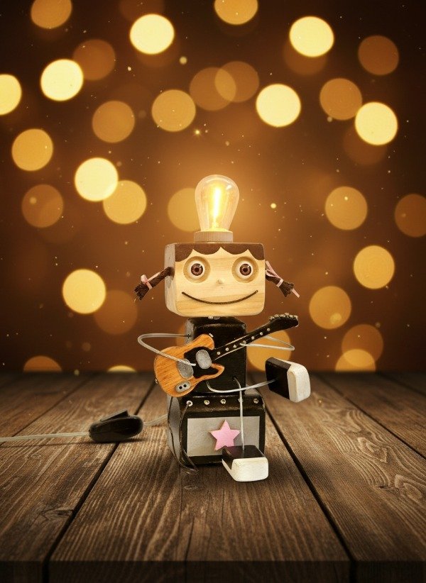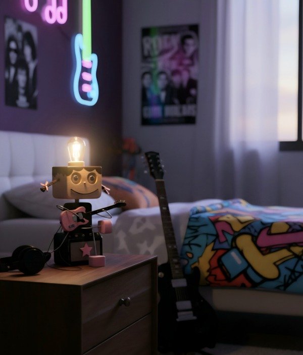 ¡Dale onda y personalidad a la habitación de tu peque con este velador infantil de madera con diseño de rockera guitarrista! Una luz de noche adorable y original que combina funcionalidad con mucha actitud.