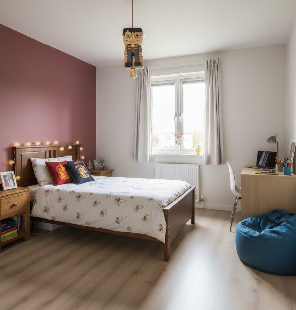 La icónica figura de Harry Potter, con sus gafas redondas y su varita lista para un hechizo, está cuidadosamente detallada y pintada a mano, elaborada en madera de primera calidad. Con medidas de 10 cm de ancho x 12 cm de profundidad x 25 cm de alto (aprox.), su tamaño es ideal para crear un punto focal mágico en tu techo. 🏰