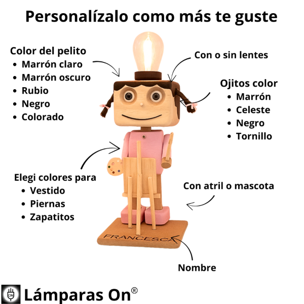 🎨 ¡Iluminá tu espacio con creatividad e inspiración! 🖌️ Nuestro Velador de Mesa "El Artista" es el regalo original perfecto para creativos, estudiantes de arte, diseñadores y amantes de la decoración inspiradora. ✨ Una pieza única pintada a mano artesanalmente 🖼️, ideal para tu estudio, escritorio, taller o cualquier rincón donde fluya la imaginación. 💡