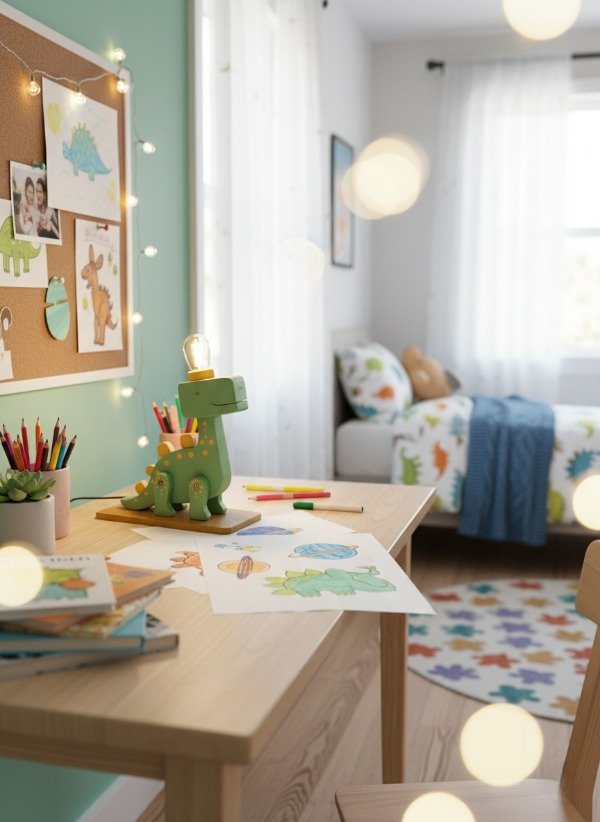 🦖 ¡Viajá al mundo jurásico con nuestro asombroso Velador de Mesa Dinosaurio! 🌿 El regalo original perfecto para pequeños exploradores, fans de los dinosaurios y la decoración temática de aventura. ✨ Una pieza única pintada a mano artesanalmente 🎨, ideal para la decoración de dormitorios infantiles, salas de juegos o cualquier espacio con espíritu prehistórico. 🌋