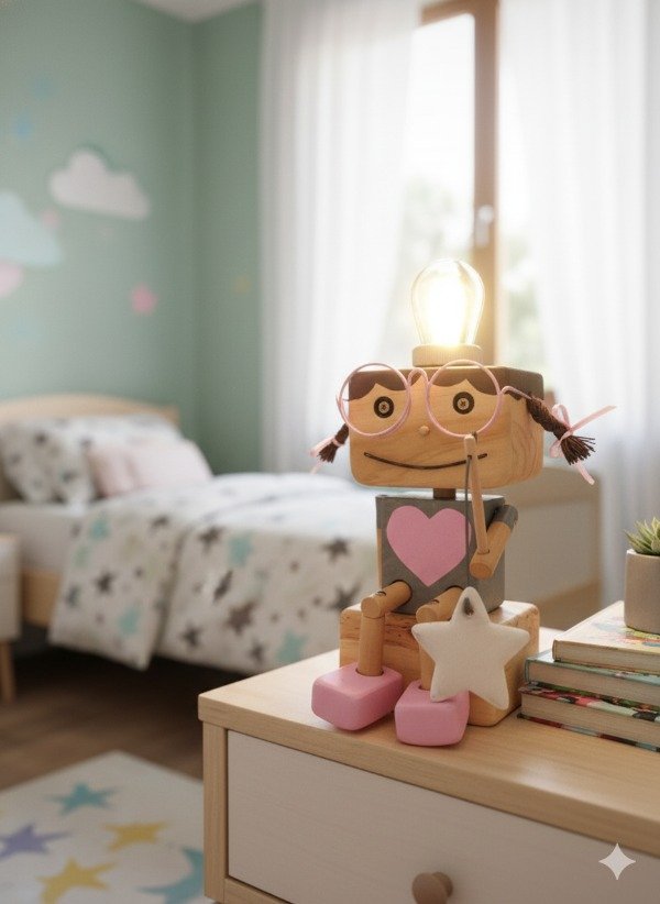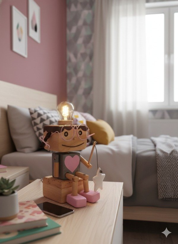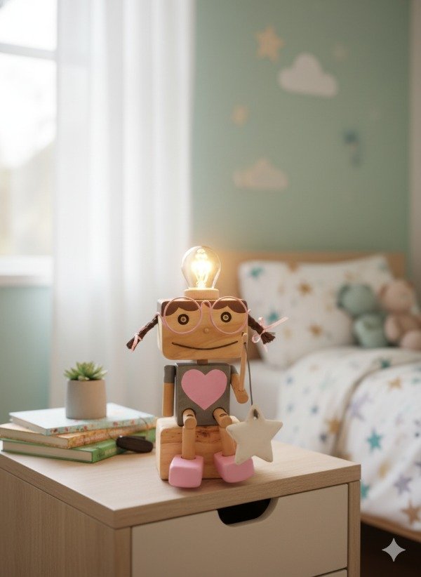 Un velador funcional y de diseño artesanal que celebra la imaginación y la personalización, con el valor de lo hecho a mano.