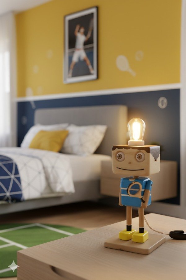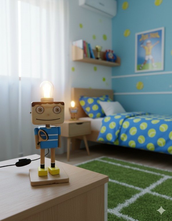 ¡ Iluminá tu espacio con nuestro exclusivo Velador de Mesa Temático de Tenista! Este velador de madera, ideal como regalo original para amantes del tenis y deportistas, es una pieza única pintada a mano artesanalmente. Perfecto para la decoración de dormitorios, estudios, escritorios o cualquier rincón temático de tu hogar.